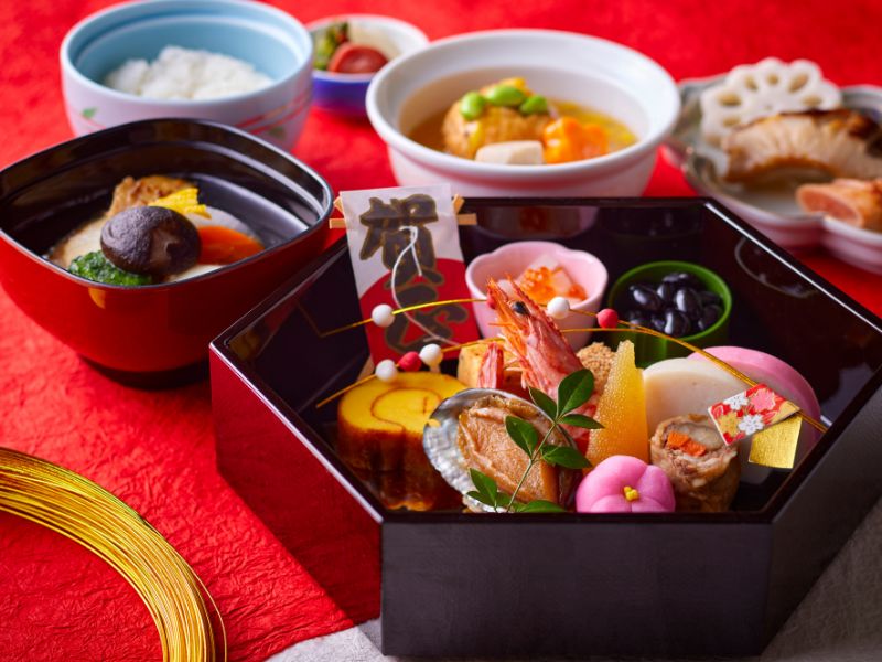 日本料理「千羽鶴」のおせちを箏の音色を楽しみながらご堪能いただけます。