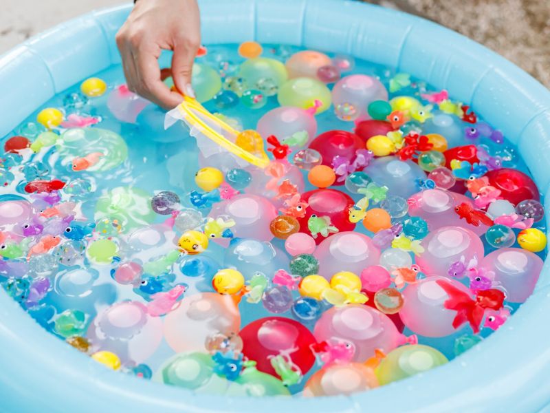 昔懐かしい射的や玩具釣りなどの縁日が並びます