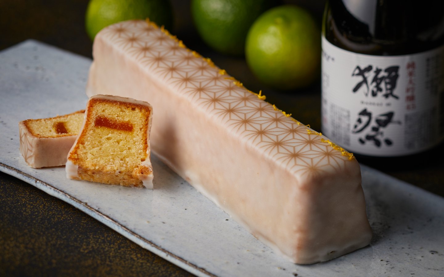 加藤パティシエの出身地・山口県の名産を生かした「獺祭とゆずきちが織りなす ~幸せますケーク~」。