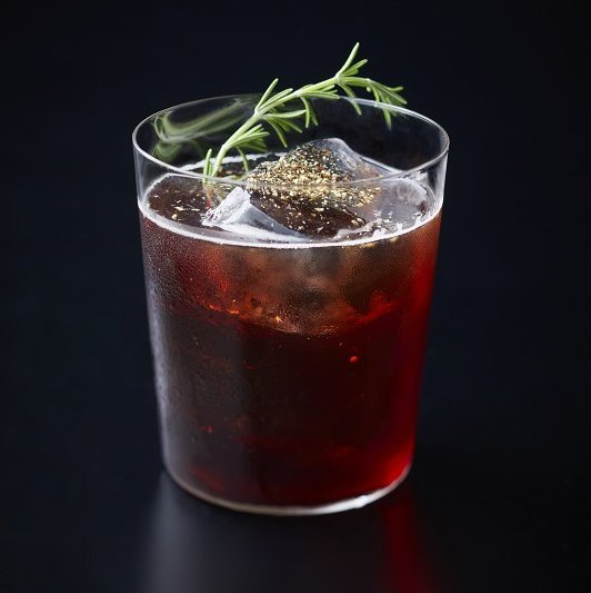アイリッシュウィスキー (イーガンズ アイリッシュ・ウィスキー ヴィンテージ・グレーン) ドライ・レッド・ベルモット カシスリキュール ソーダ ローズマリー 黒胡椒