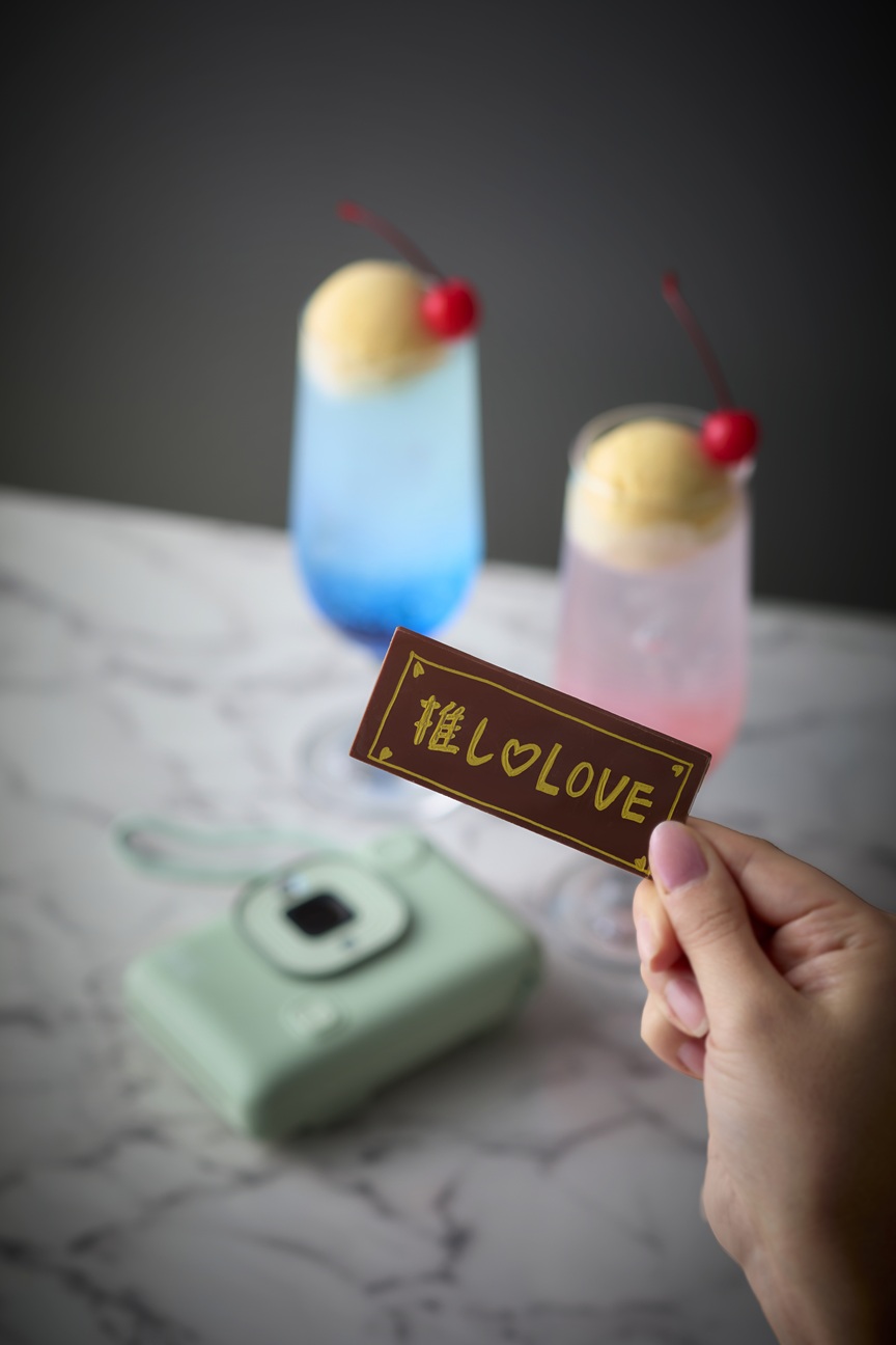 推しカラーのフロートと、自分で文字を書くメッセージチョコレートプレート、記念におひとりにつき1枚チェキを撮影します。 バーテンダーが手掛ける色鮮やかなフロートは、あなたの推しカラーもきっと見つかる10色をラインアップ。お気に入りのグッズと共に、ライブ前後や記念日に特別なひとときをお愉しみください。
