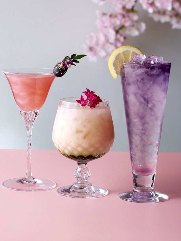 桜フレーバーのジンに紫蘇の香りを加えた、桜色に煌めくショートカクテル