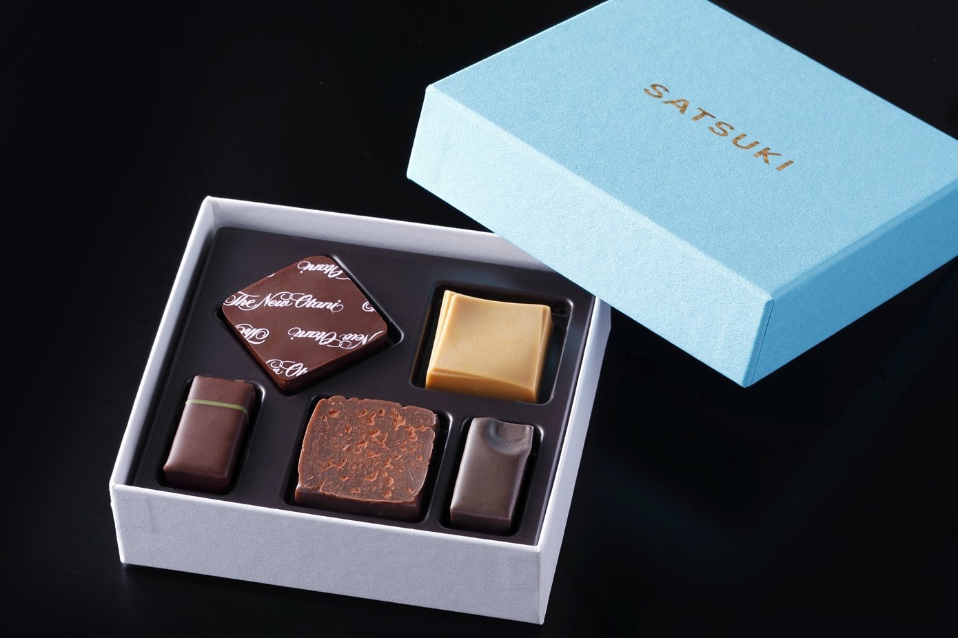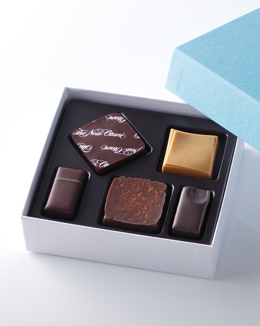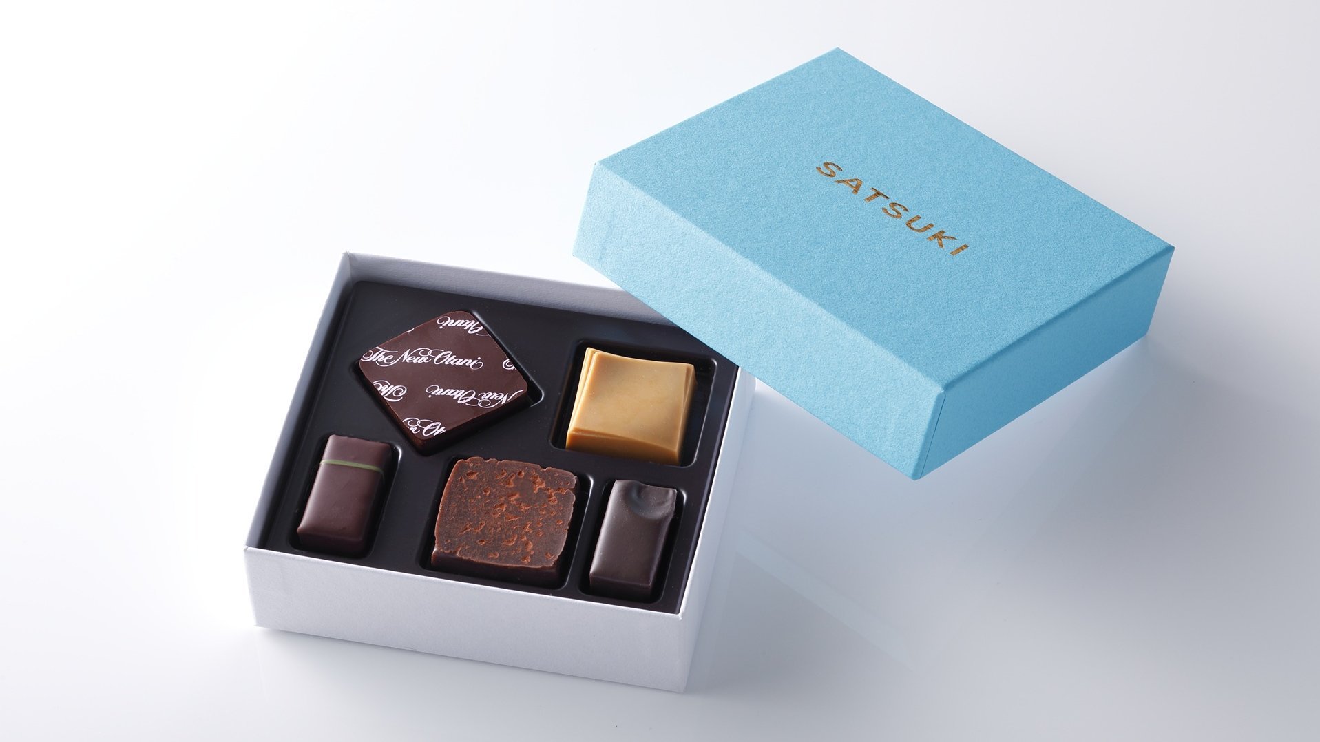 鮮やかなブルーのBOXに、5種類のオリジナルチョコレートを詰合せました。