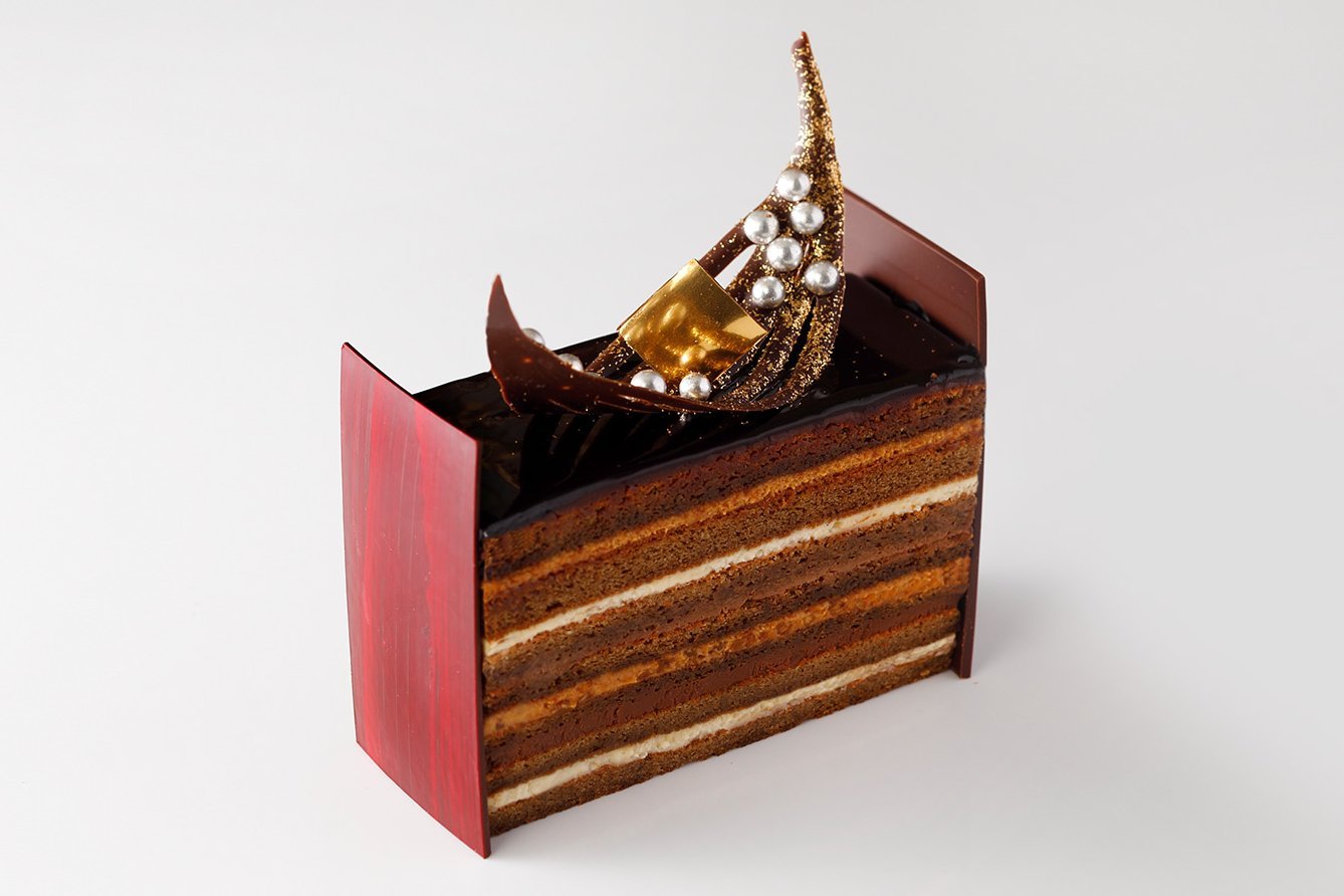 滑らかな舌触りで超濃厚なコロンビア産チョコレートガナッシュに、香ばしい風味のアーモンド生地、シロップを染み込ませた生地とさっぱりとしたバニラクリームを、全8層に重ねたケーキです。詳しくはこちら