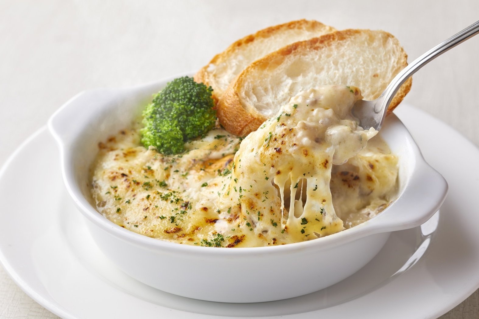 モッツァレラ、グリエール、ナチュラル、パルメザンの4種のチーズがとろける濃厚ペンネグラタン