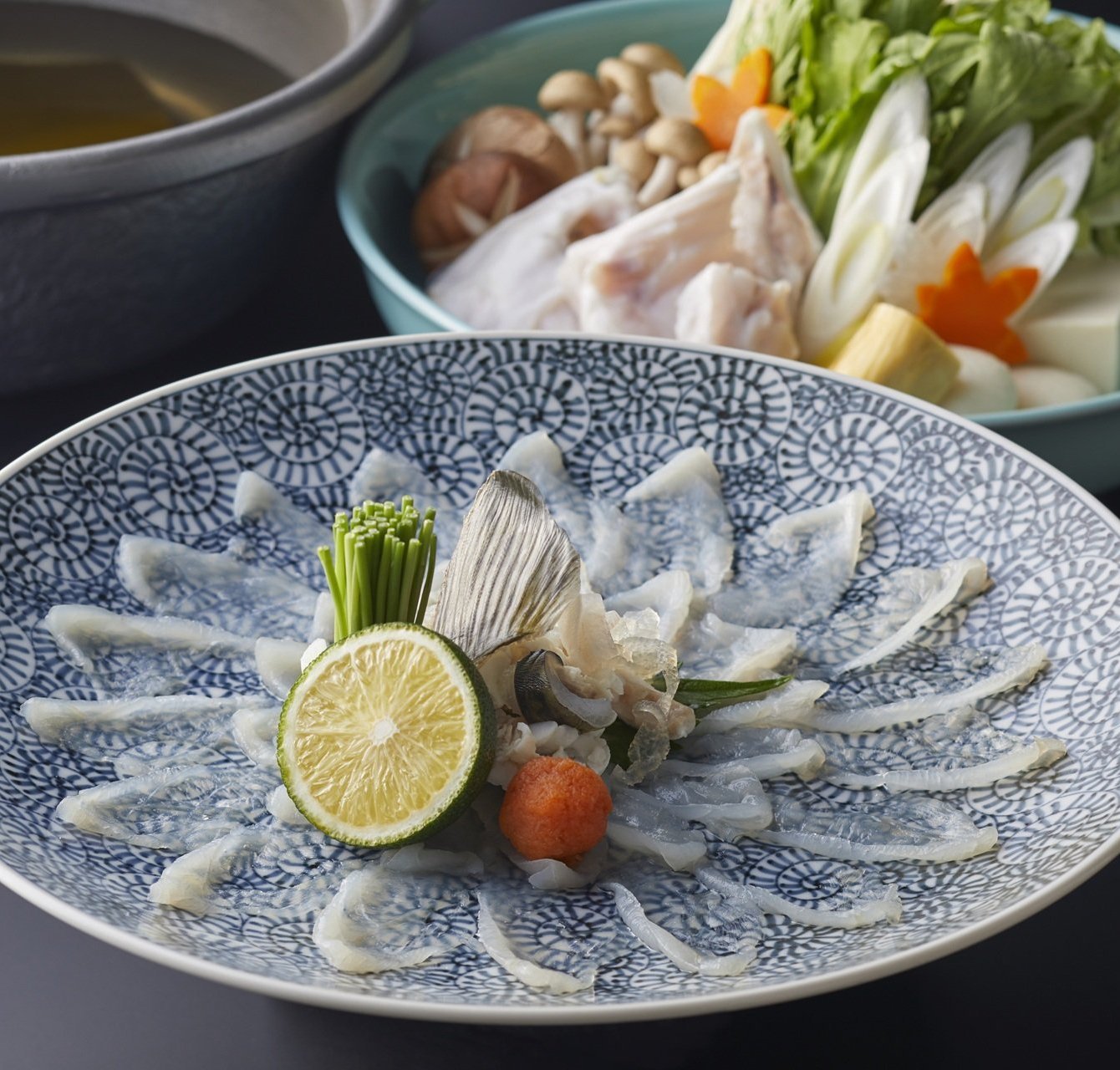 個々盛りのふぐ刺し・ふぐちり。