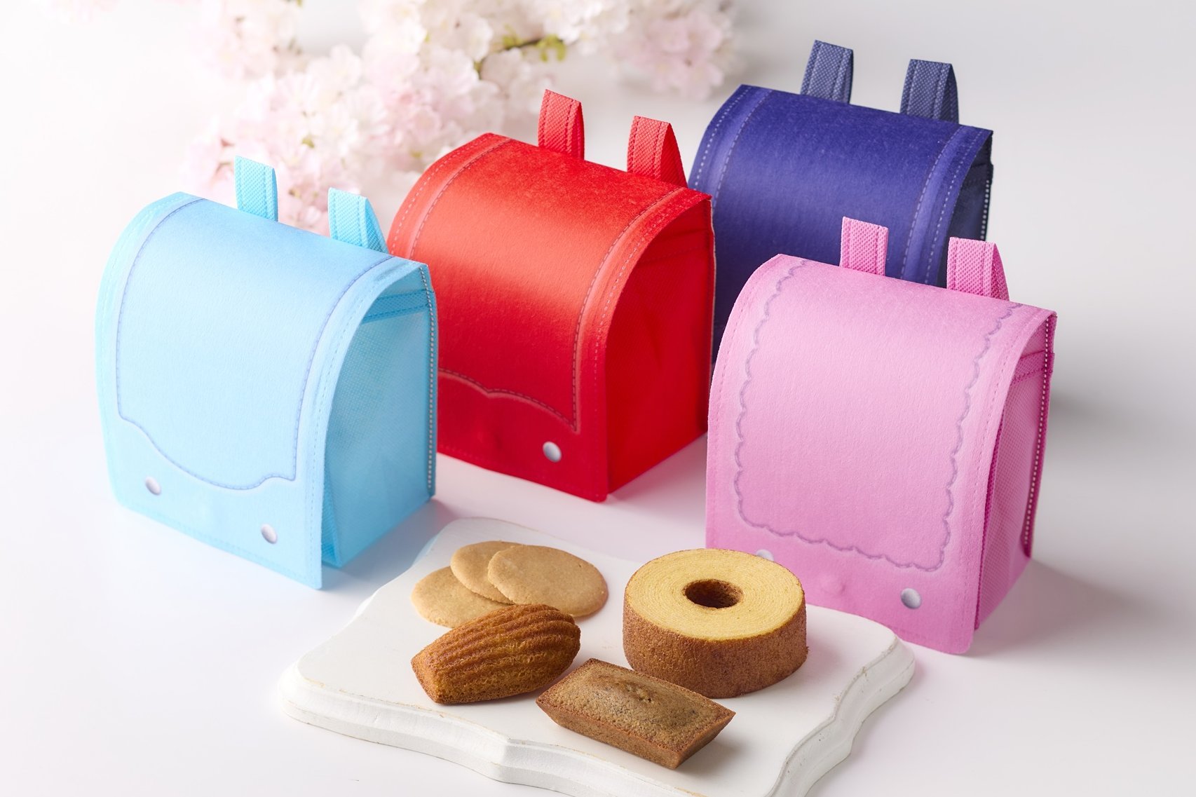 ご入学のお子様に、ランドセルケースに入ったお祝いの焼菓子をプレゼント