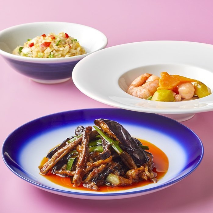 エビチリ丼 / 麻婆豆腐丼 / 茄子と挽肉丼