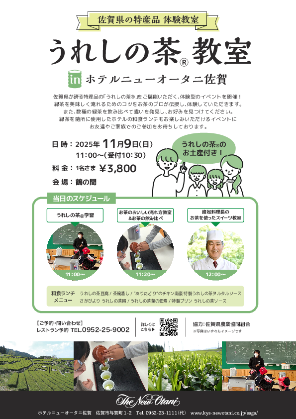 緑茶を随所に使用したホテル和食ランチもお楽しみいただけるイベントにお友達やご家族でのご参加をお待ちしております。