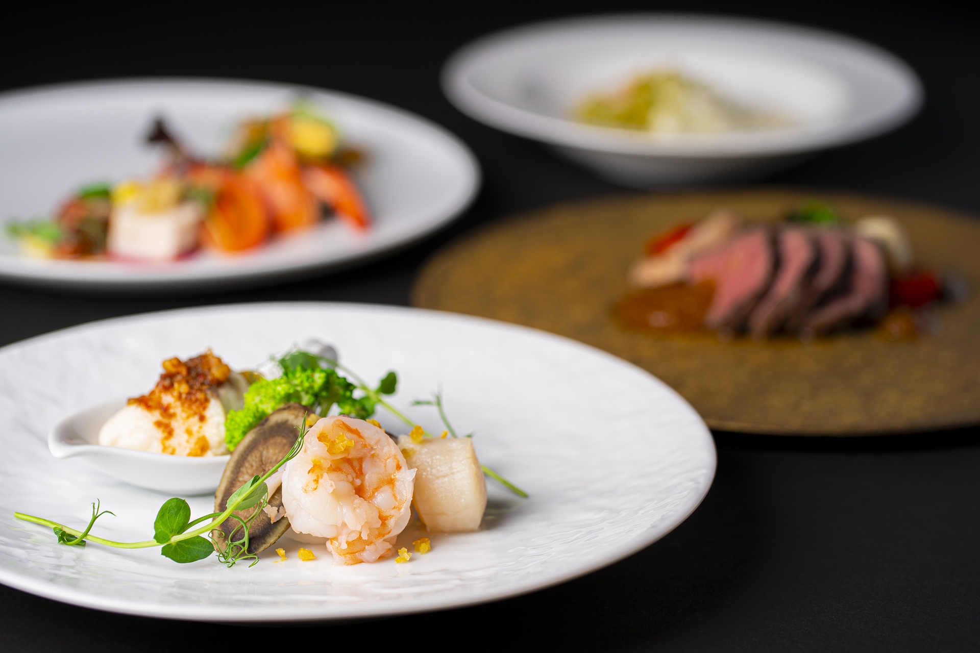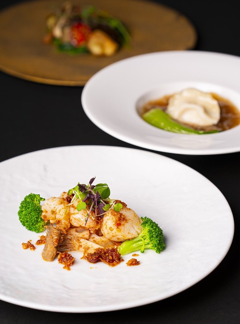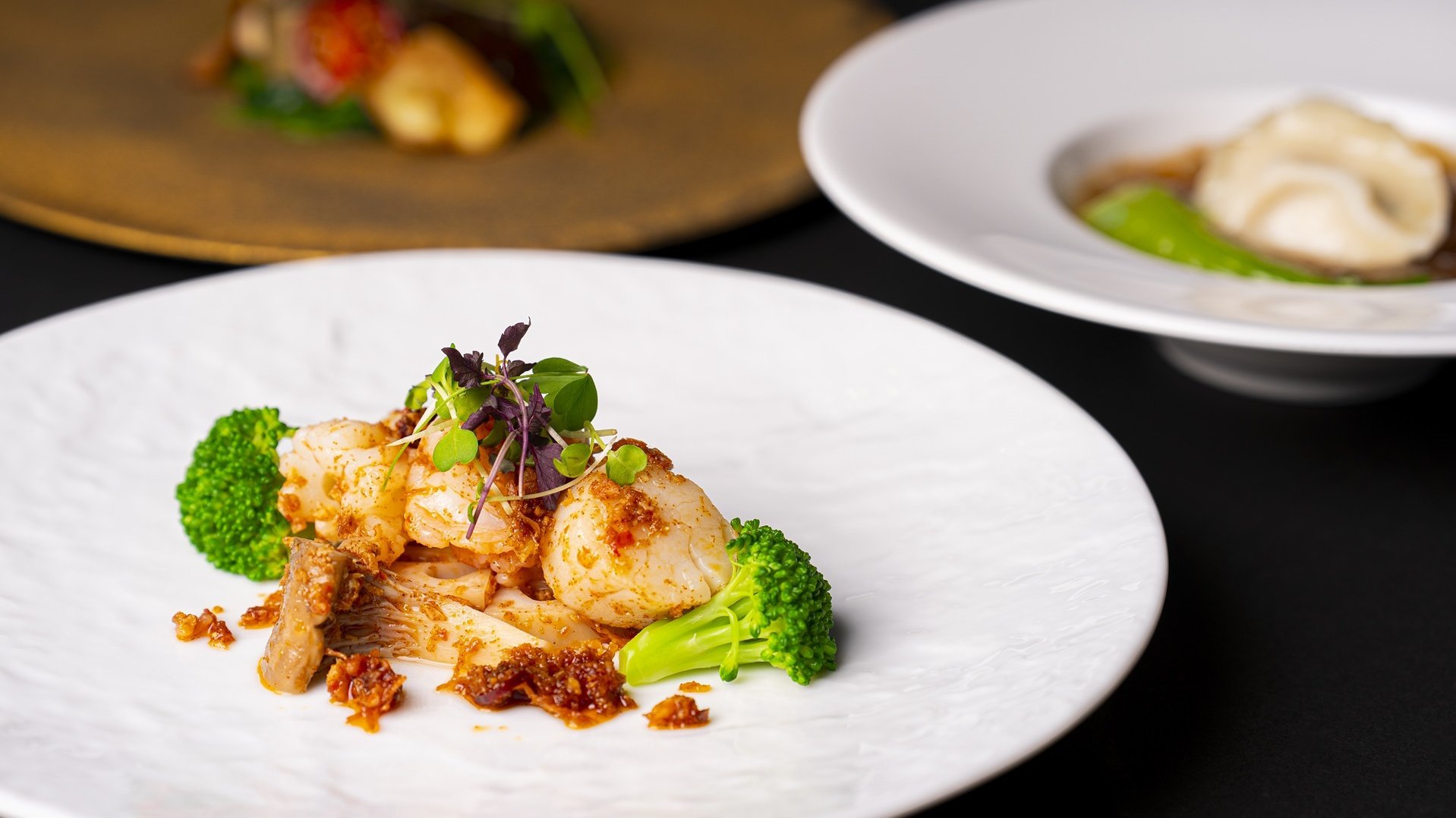 XO醤香る真鯛のスチーム 香港フィッシュソース 大海老とホタテの柚子香るあっさり炒め